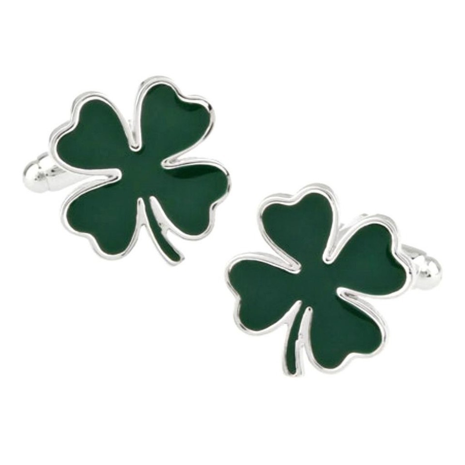 - FOUR LEAF CLOVER CUFFLINKS Green Irish Shamrock NEW Good Luck St Patrick's Day