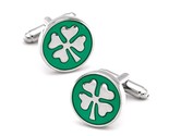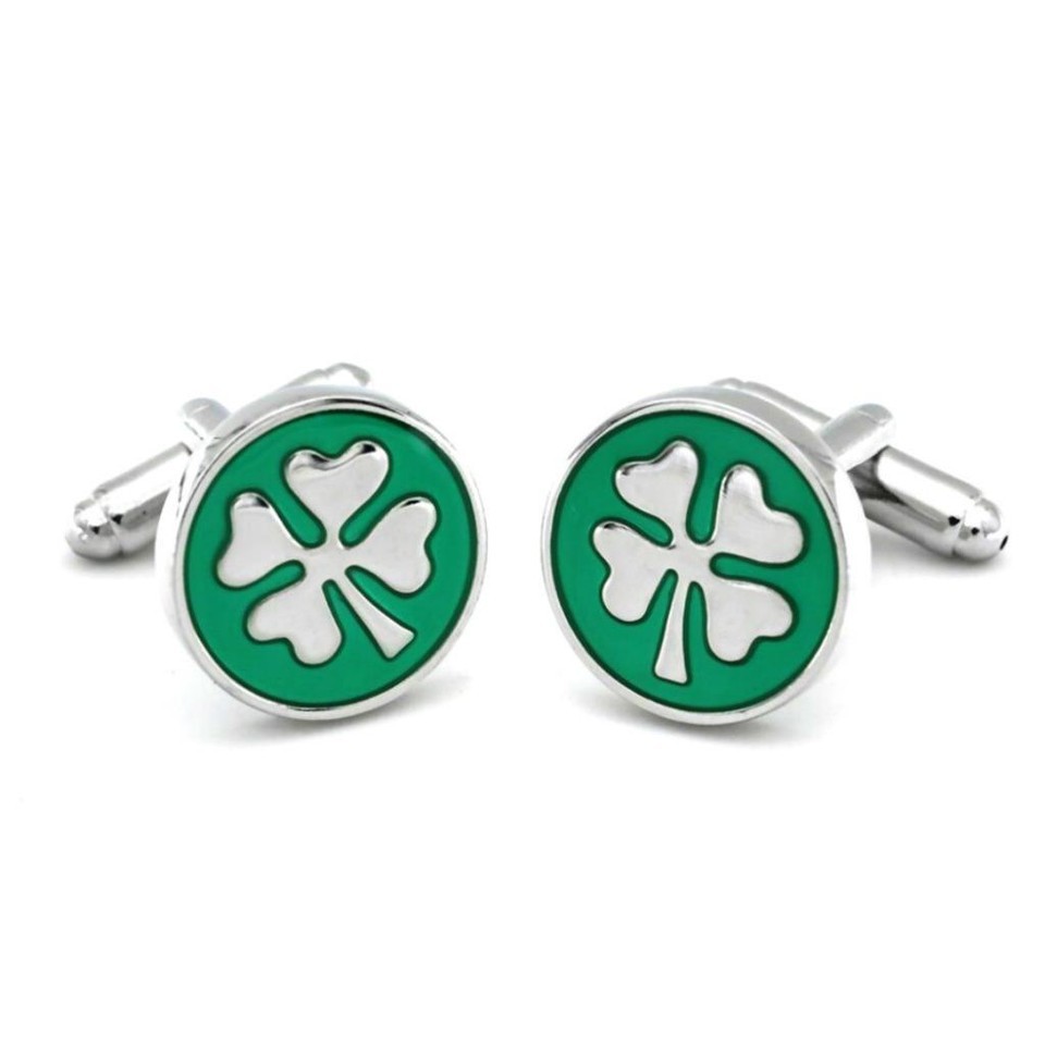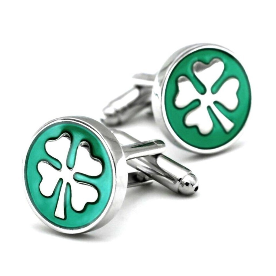 - FOUR LEAF CLOVER CUFFLINKS Irish Good Luck Green Shamrock 4 Leaf St Patricks Day