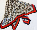 Soft square scarf with beautiful print. Geometrical clover pattern with coordinating colored edge, so chic and edge! Makes great style around the neck, hair, waist as a belt, purses, endless styling uses!