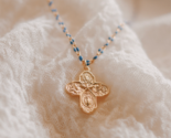 vibrant blue enamel, this piece is a subtle yet bold tribute to the saints who light your
