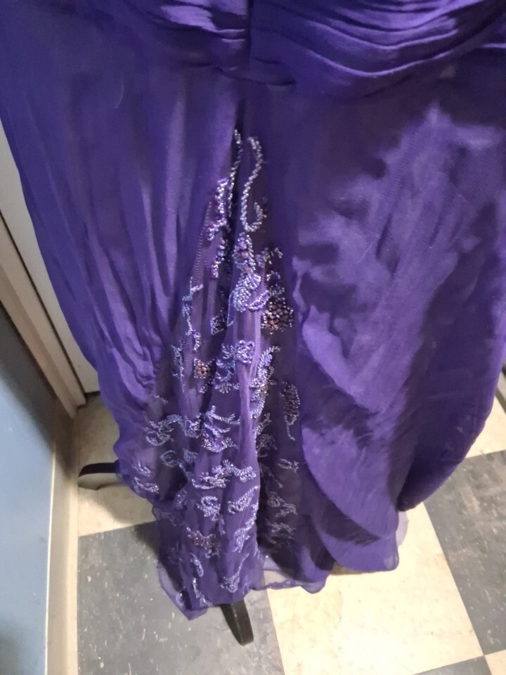 - Fouy Chov Couture New York Women's 10/12 Purple Embellished Evening Gown Beaded