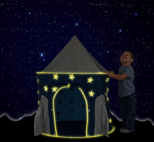 Get ready for an adventure! Are you ready to set your child and his or her friends off on a great journey to space and beyond? Well, look no further than this Rocket ship play house! The easy-to-set-up rocket ship play tent is perfect for cultivating your child's imagination and make him or her feel like a true Astronaut. The best part? It doesn't take more than a minute for your child to have a space shuttle parked anywhere your child wants it to be. Now, all your child needs is a matching Astronaut costume and she's all set! Why your kids will love it just big enough to fit a pair of budding astronauts, this folding play tent is the perfect space shuttle companion. Crafted from high-quality, durable and breathable materials, this Rocket ship playhouse holds up well with minimal assembly and once playtime is over, it folds flat and is easy to tuck away until the next space adventure. Get a space shuttle tent today! Whether as a gift for your own child or for a friend?s child, this play Tent is sure to light up any child's face and give them hours upon hours of imagination-filled entertainment. So, what are you waiting for? Liven up playtime for your little explorers and order this Kiddie play tent today so you can have a rocket play tent sent over to you as soon as possible and give your kids an out of this world adventure!