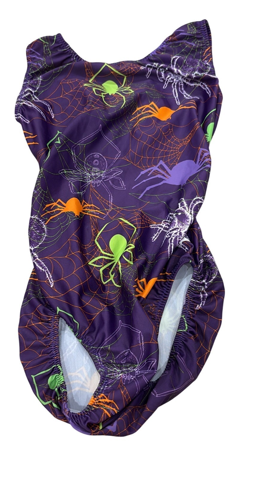 - Foxy's Halloween Spider Print Leotard A/S Nylon Spandex Purple Made In USA
