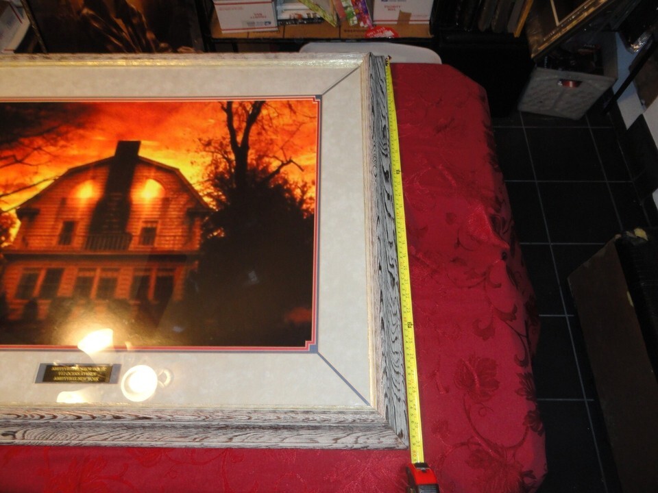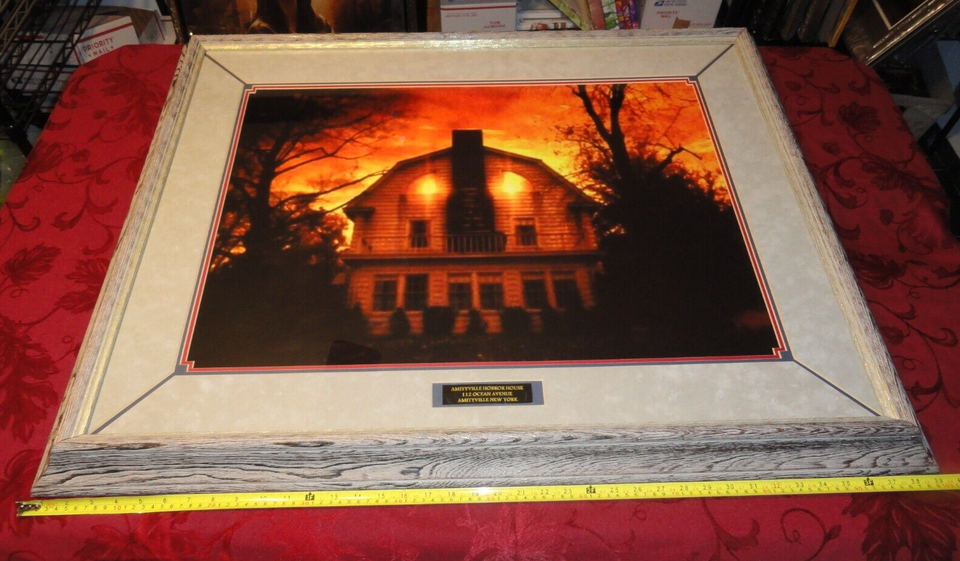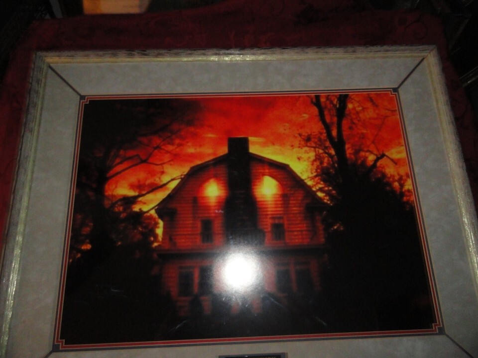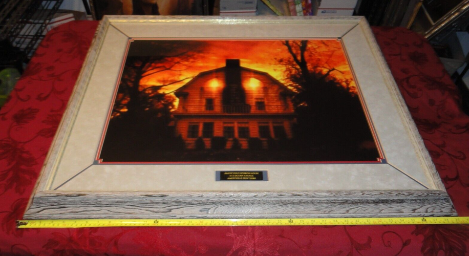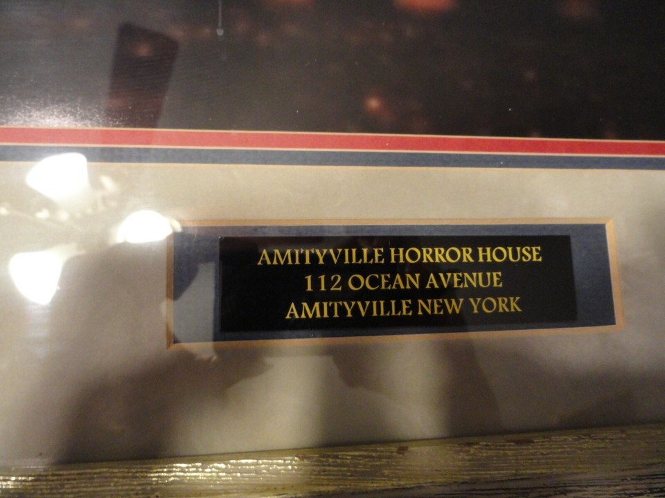 ALSO COMES WITH THE REAL HISTORY OF THE AMITYVILLE HORROR HOUSE THAT IS PROFESSIONALLY KEPT IN A MAGNETIC DOCUMENT PROTECTOR THAT IS ON THE BACK OF THIS FRAMED BEAUTY.