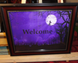 FRAMED PURPLE HALLOWEEN WITCH WELCOME PHOTO SIGN IN VINTAGE HQ FRAME 13"X11"