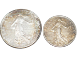 - France 1918 Silver 1 Franc & 1917 Silver 50 Centimes Coins