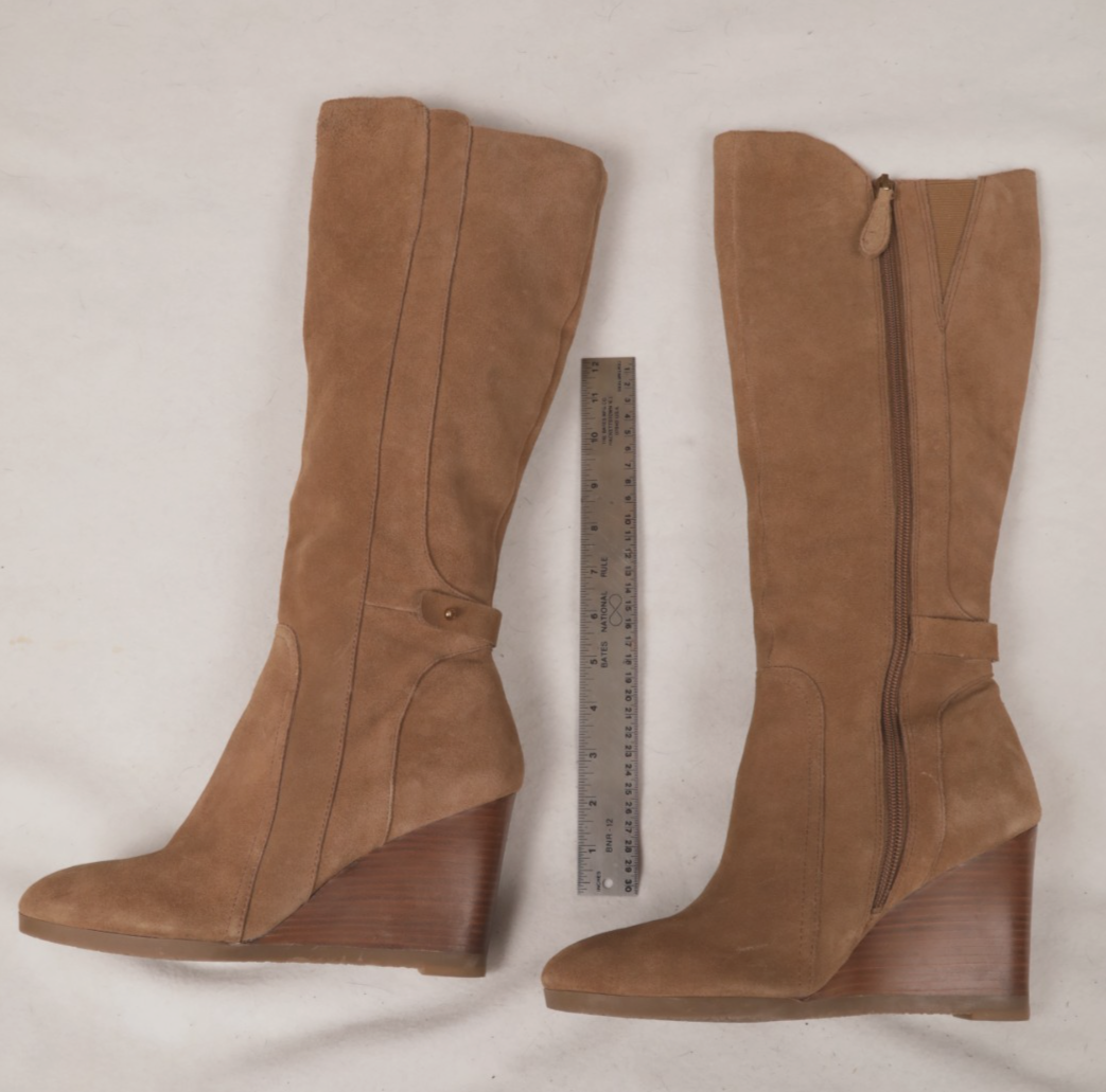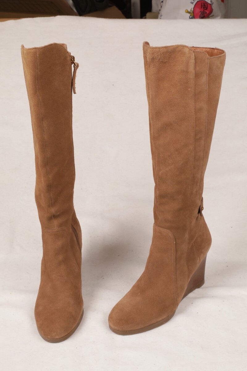 - Franco Sarto L Walker Knee Boots 8 M Light Brown Suede Leather Wedge Heel Zip