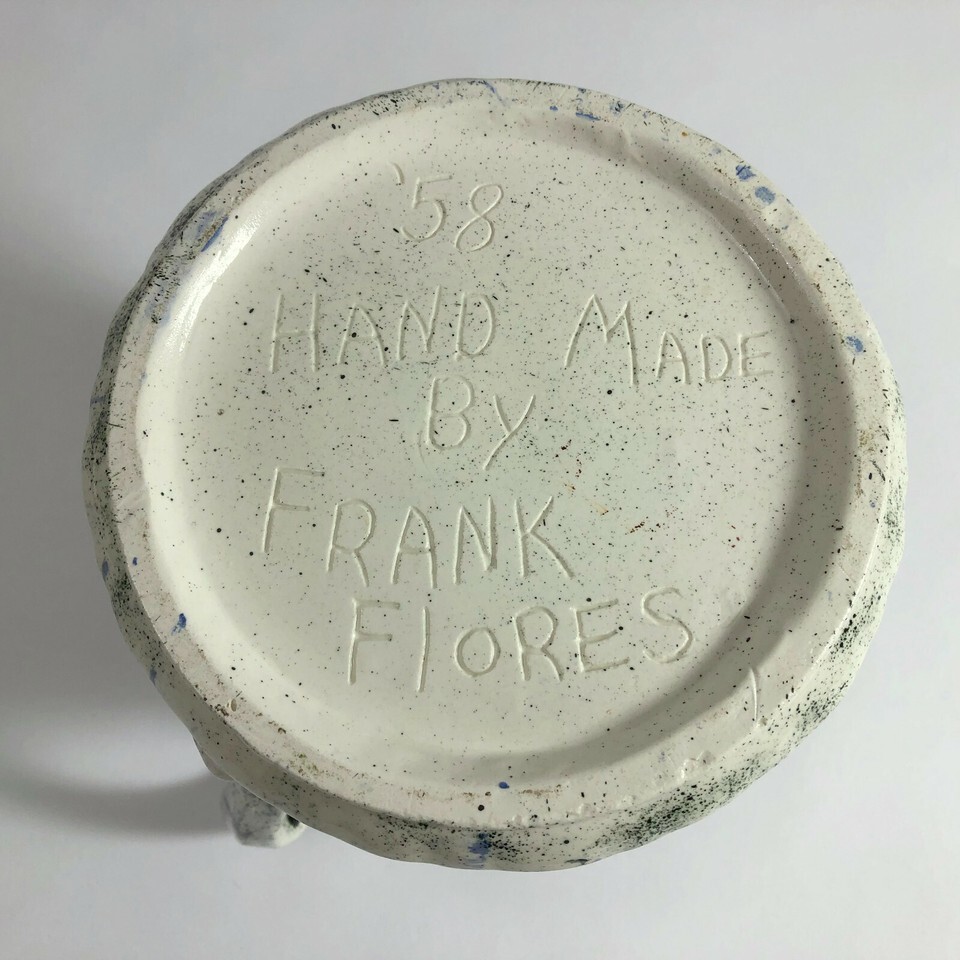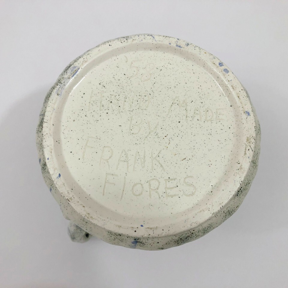 - Frank Flores Ceramic Pitcher with Pansies Hand Made 1958 Vintage
