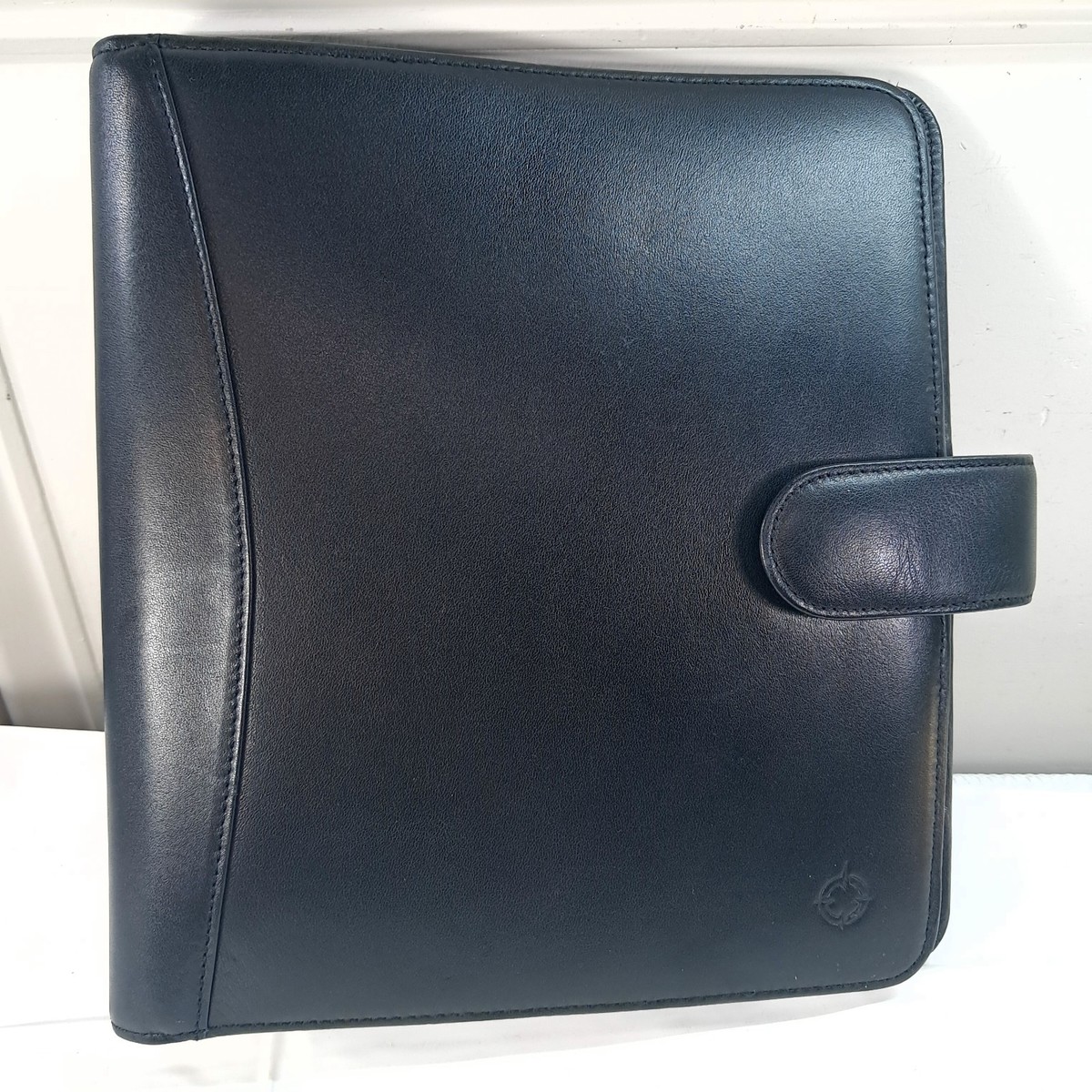 Leather Binder. Includes some inserts as shown. Some wear/marks as shown. Overall very good condition. Clean and ready for use!