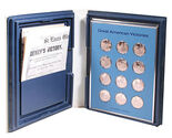 Coins are in uncirculated condition, protected in capsules. Some cosmetic damage/smudges to case. One newspaper facsimile is missing.