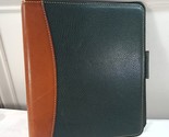 - Franklin Quest binder planner hunter green camel top grain leather 7 ring 13081