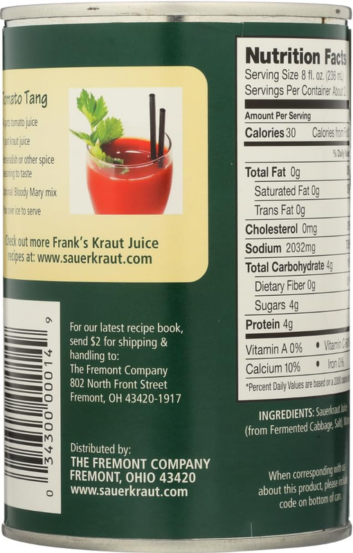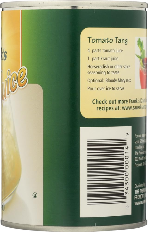 Bring the authentic, tangy taste of Frank?s Kraut to your kitchen with Frank?s Kraut Juice 14oz Cans (12 Pack). Made from naturally fermented cabbage and salt, each can delivers the same bold, refreshing flavor that generations have loved. Perfect for drinking straight, cooking, or adding flavor to recipes, Frank?s Kraut Juice is packed with beneficial enzymes and probiotics to support gut health and digestion. These shelf-stable cans make it easy to stock up for home use, meal prep, or foodservice. Gluten-free, vegan, and crafted from just two ingredients, Frank?s Kraut Juice is a clean, wholesome choice for anyone who wants authentic sauerkraut flavor with convenience. From our family to yours, we?ve been perfecting this craft since 1905 ? a taste of tradition in every can.