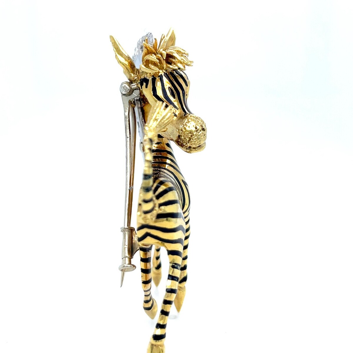 Ein sehr skurriler goldener und schwarzer, emaillierter Zebra -Brosche streift gestreift