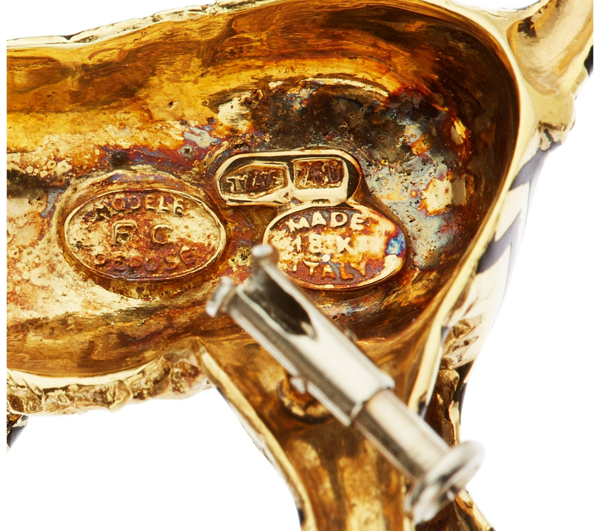 - Frascarolo 18k Gold, Schwarz Emaille 01ct Rubin Und .10ct Diamant Zebra Pin /