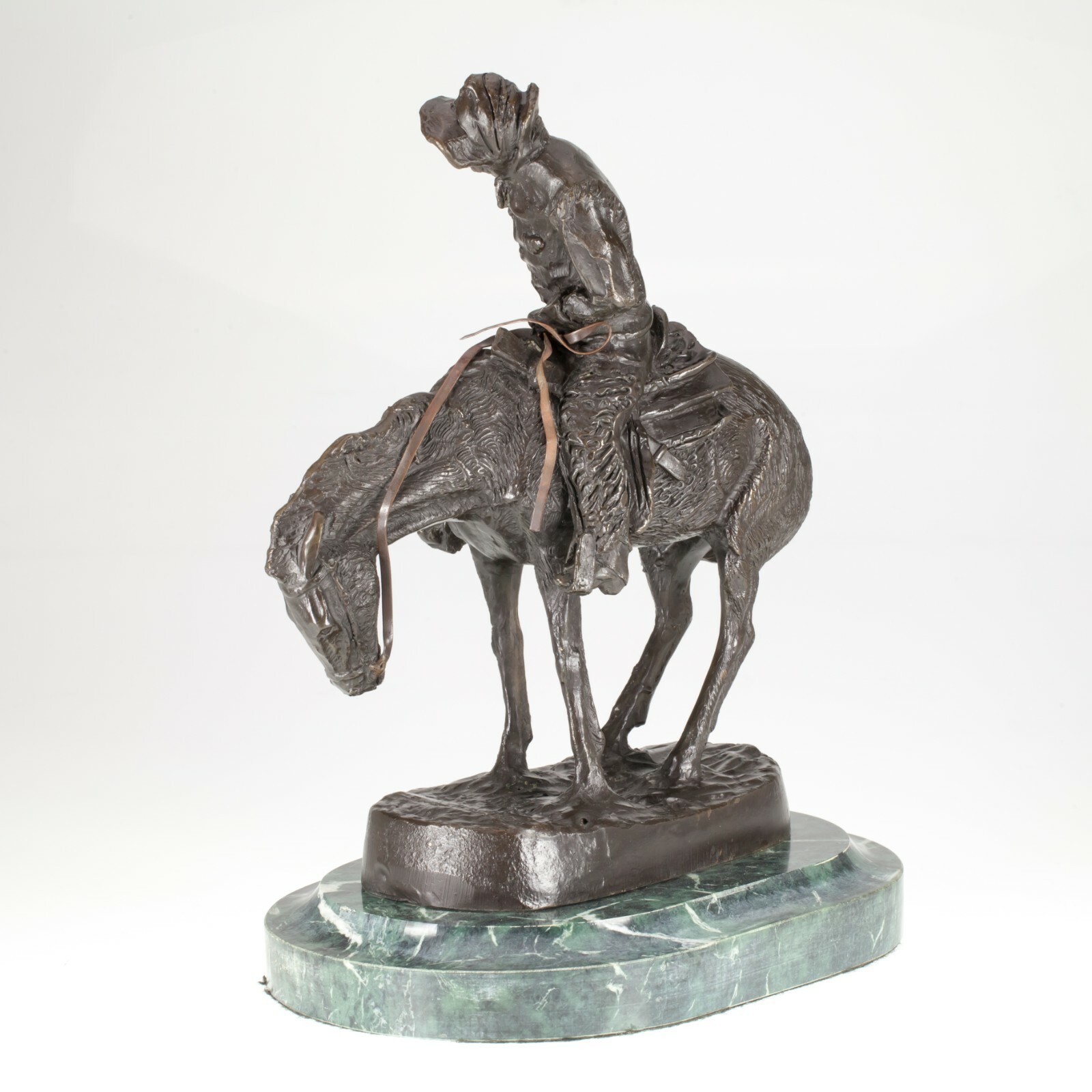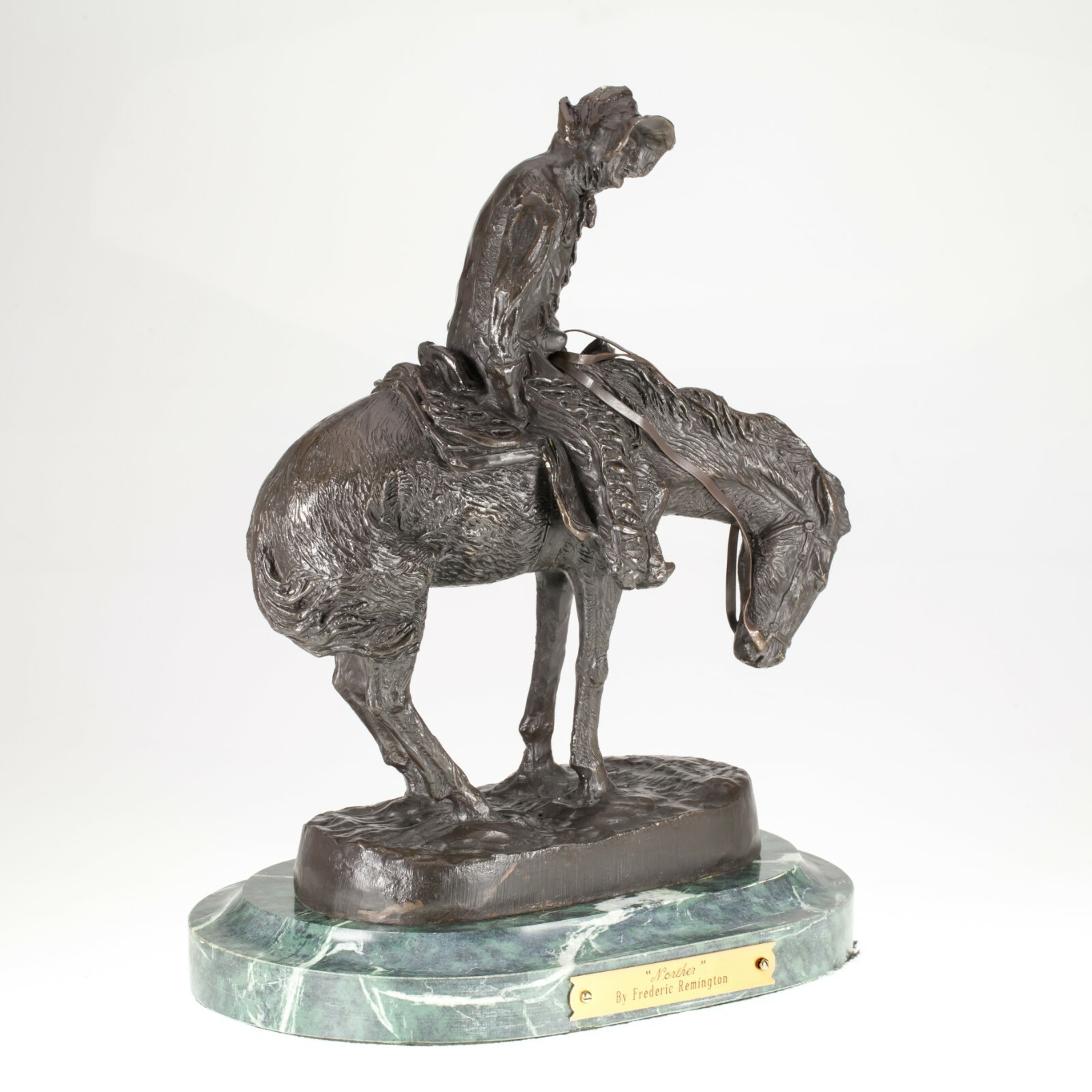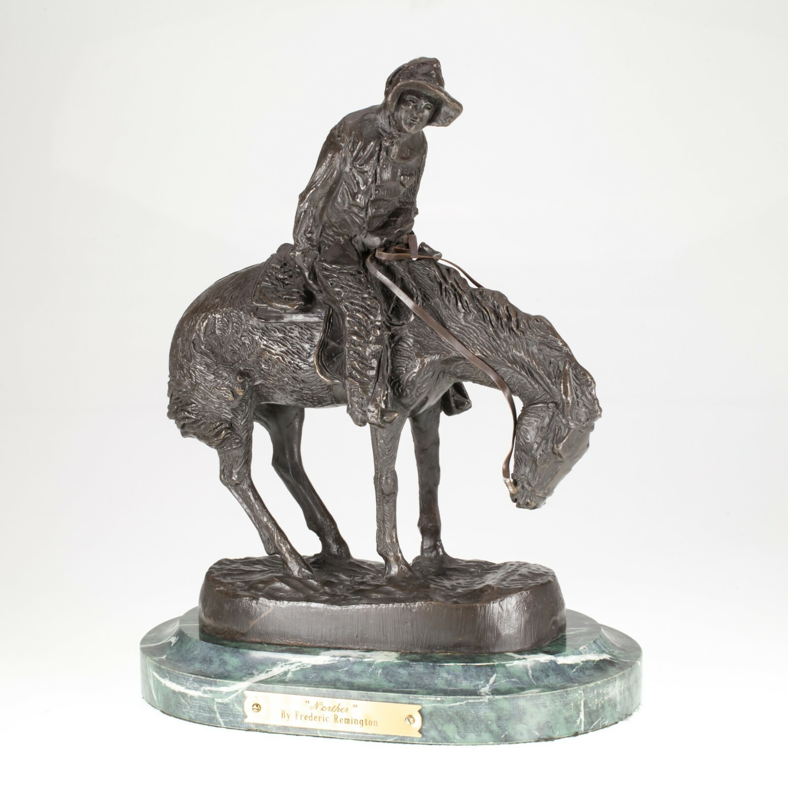 - Frederic Remington "Norther" Bronze Statue on Green Marble Base 11" Nice
