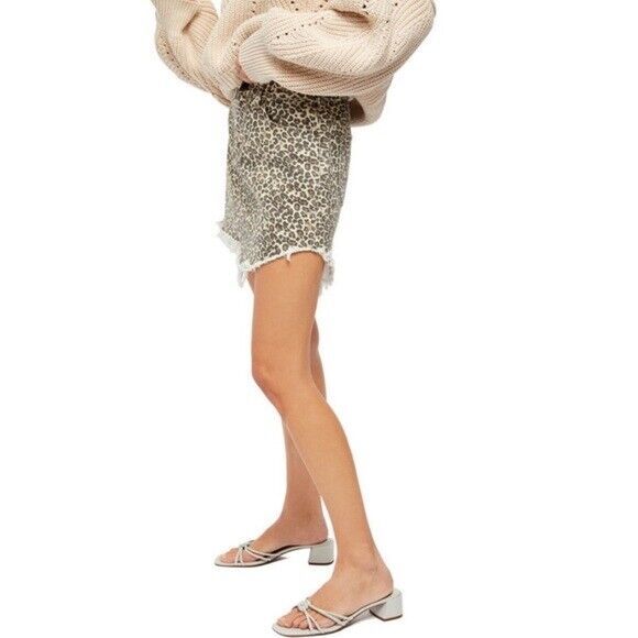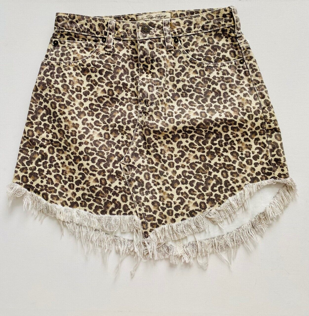 Free People Cheetah Print Bailey Jean Skirt Leopard ( 24 )