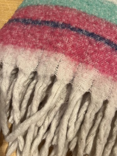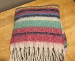 Free People Fringe Pink Blue Yellow Stripe Blanket 60” x 50” Striped Throw Soft