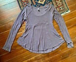 Free people Intimately pale plum, delicate, light weight, stretchy knit, flattering, tailored lines, raw edges, pull over, scoop neck, long sleeves that cover part of the hands. 95% Rayon and 5% spandex. Fabric tag cut out but fabric tag from identical top in another color is pictured to show fabric content. A few small snags. In excellent used condition.