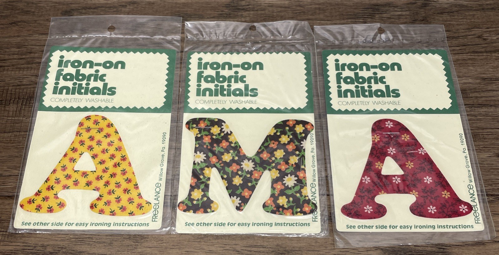 - Freelance Iron-On Fabric Initials 3” Lot Of 3 “M” “A” x2 NOS Clothing MH JD