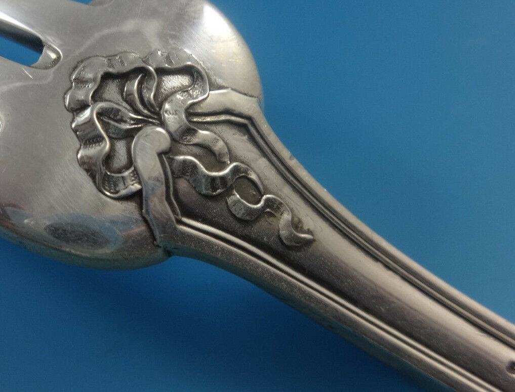 Beautiful FRENCH EXPORT (1840-1973) sterling silver flatware set with ribbon on the reverse and leaf detailing, 30 pieces. This set includes: