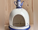 French Farmhouse Sponge Holder with Kettle White Blue Rustic Kitchen Decor