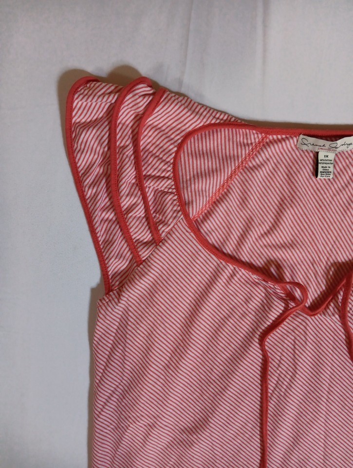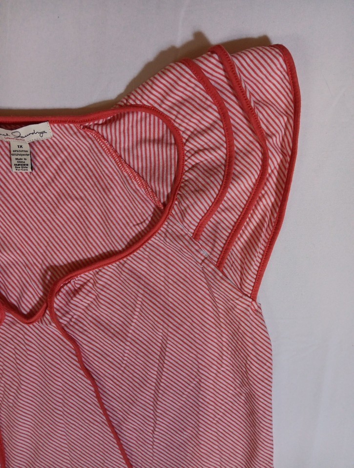 The French Laundry Women's Red Striped Sleeveless Top in size 1X is a stylish and versatile addition to any woman's wardrobe. Made from a comfortable cotton blend, this top features a round neckline and a casual sleeveless design. The colorful red striped pattern adds a playful touch to the basic style, making it easy to pair with a variety of outfits. With its regular fit and easy care features, this top is a practical and fashionable choice for everyday wear. Normal wear.