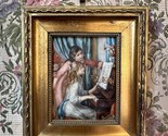 This enchanting French vintage mini painting beautifully captures a serene moment of refinement, depicting two lovely women during a piano lesson. The delicate brushstrokes and soft color palette convey a sense of grace and elegance, while the intimate scene evokes a timeless charm. It?s important to note that this is likely a high-quality print rather than a true oil painting, but its vibrant colors and fine details still bring a rich, artistic beauty to any space. Whether displayed as a stand-alone treasure or part of a curated gallery, this piece adds a touch of French artistry and classic elegance to your home.