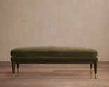 Bring timeless French elegance into your space with this sophisticated Tiger Mountain Pattern Bench. The striking golden ochre upholstery showcases an abstract topographical pattern that adds visual depth and refined texture. Crafted from solid hardwood with a rich walnut finish, the bench features elegant tapered legs adorned with protective brass caps that enhance its vintage appeal. The generous 47x18x17 inch dimensions make it perfect as an end-of-bed bench, entryway seating, or living room accent piece. Professional-grade upholstery and high-density cushioning ensure lasting comfort and durability. The mid-century proportions and classic French provincial styling complement both traditional and contemporary interiors, while the sophisticated color palette creates an instant focal point. Whether placed in a master bedroom, formal living area, or grand entryway, this versatile bench combines European sophistication with practical functionality. The premium construction and timeless design make it a statement piece that will elevate any interior for years to come.