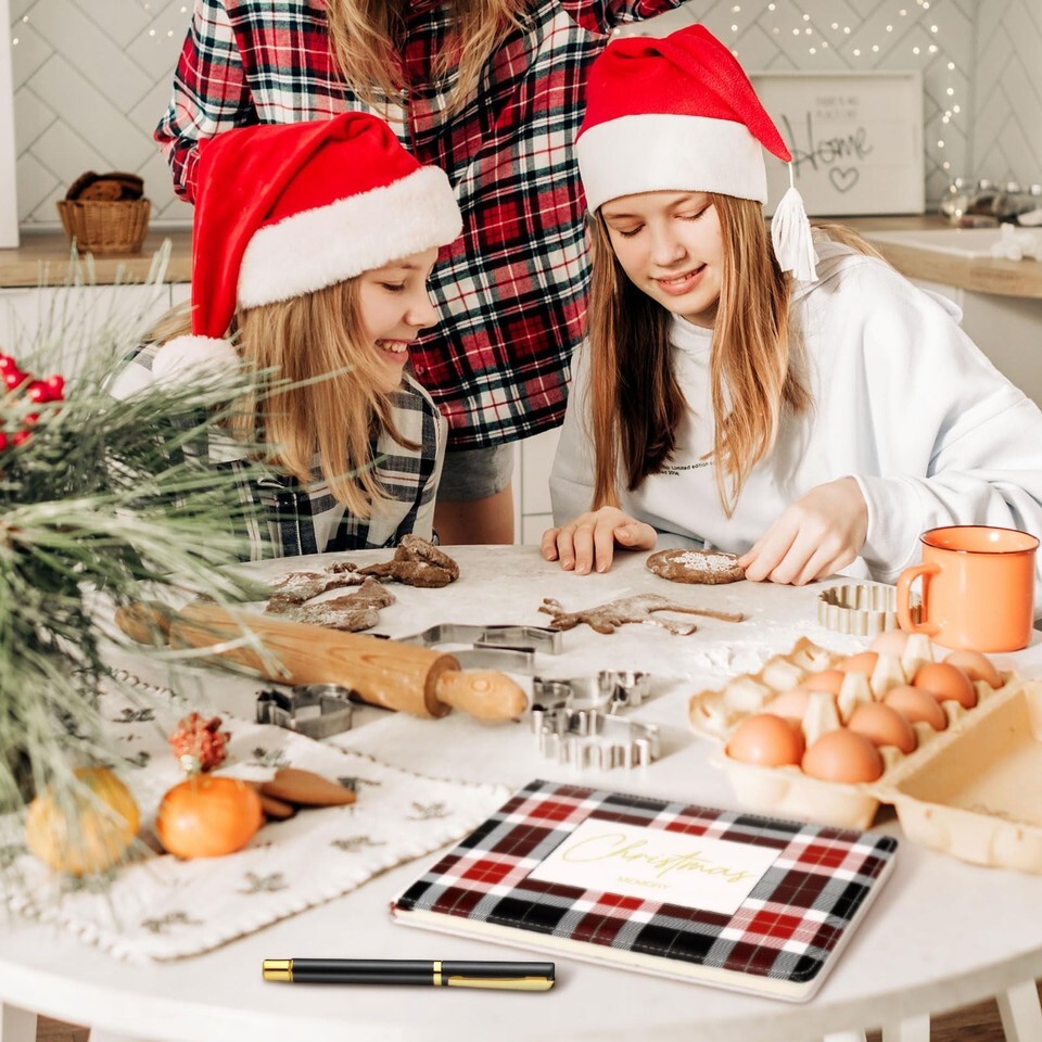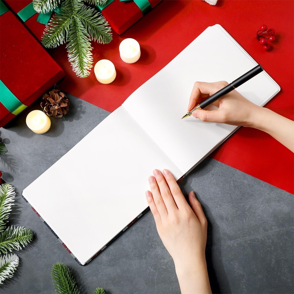 Exquisite Design: our Christmas notebook is designed with a classic Christmas red cover, with gold plated text "The Family Christmas Book", which is classic and versatile; We designed the inner pages to be blank, so you can design them as you like, write your own information, draw the border, and make a Christmas memory book of your own