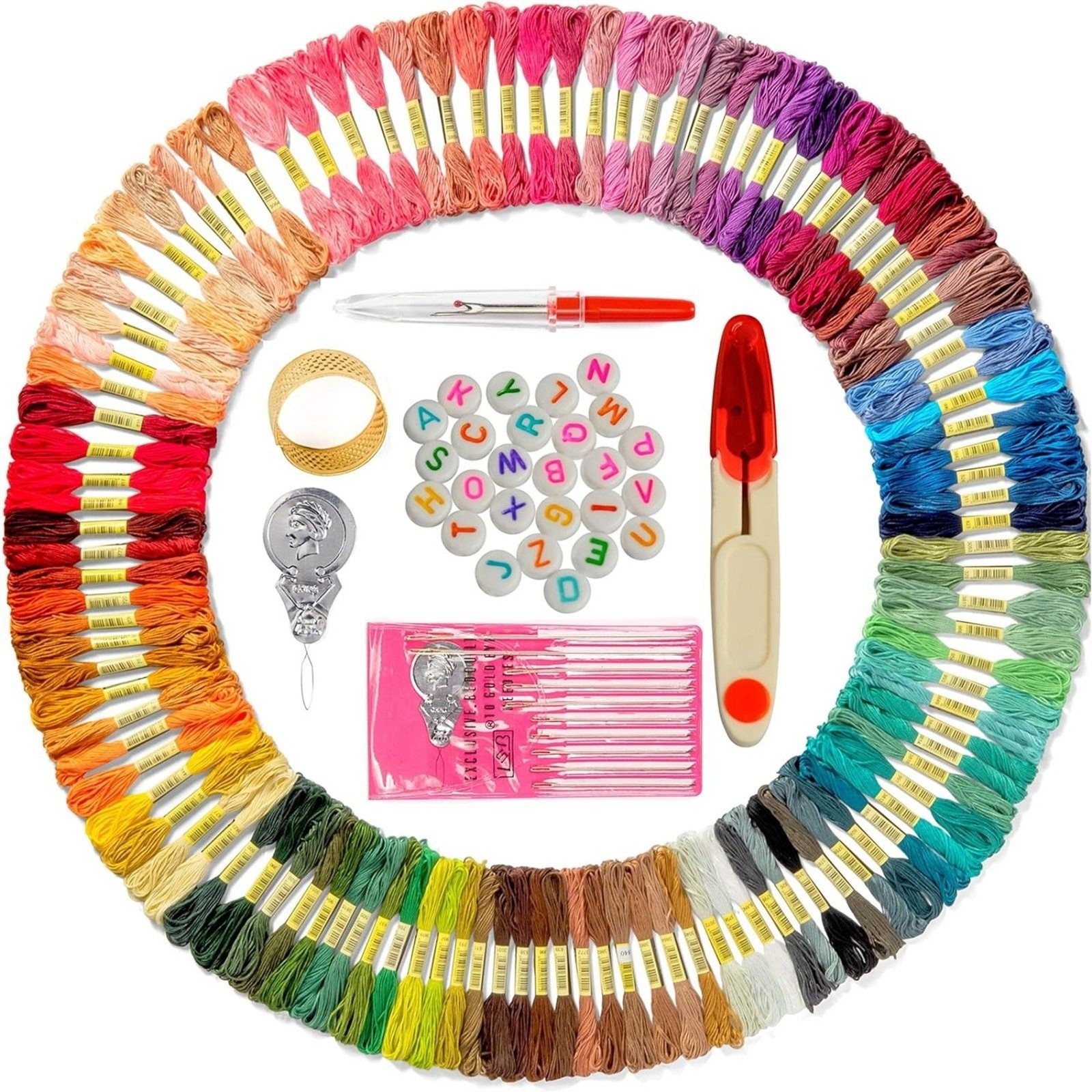 Everything you need for string crafts, in one value-packed kit! This 110-color embroidery floss set includes vibrant, pastel, and dark shades coded by DMC numbers for easy matching. Each skein is 100% cotton, 6 strands, approx. 8.75 yd?thick, durable, and easy to separate for smooth threading. Perfect for friendship bracelets, cross stitch, embroidery, string art, quilting, tassels, and DIY projects.