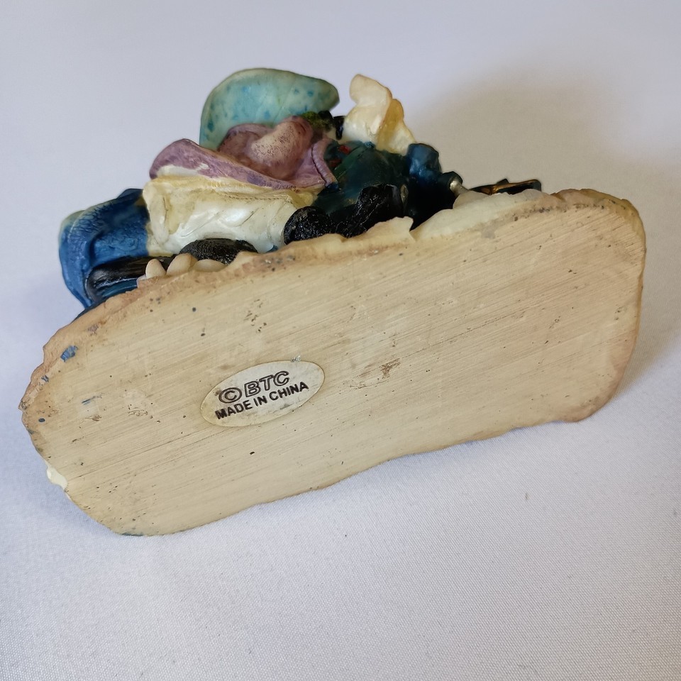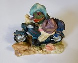 This Frog Figurine Riding A Motorcycle is a unique and quirky decorative piece that would appeal to collectors of animal figurines and fans of amphibians and reptiles. Made in China, this. OTC figurine features a frog riding a motorcycle, adding a playful touch to any collection. The detailed craftsmanship and whimsical design make it a charming addition to a display of frog figurines. Normal wear. Sizes are approximate.