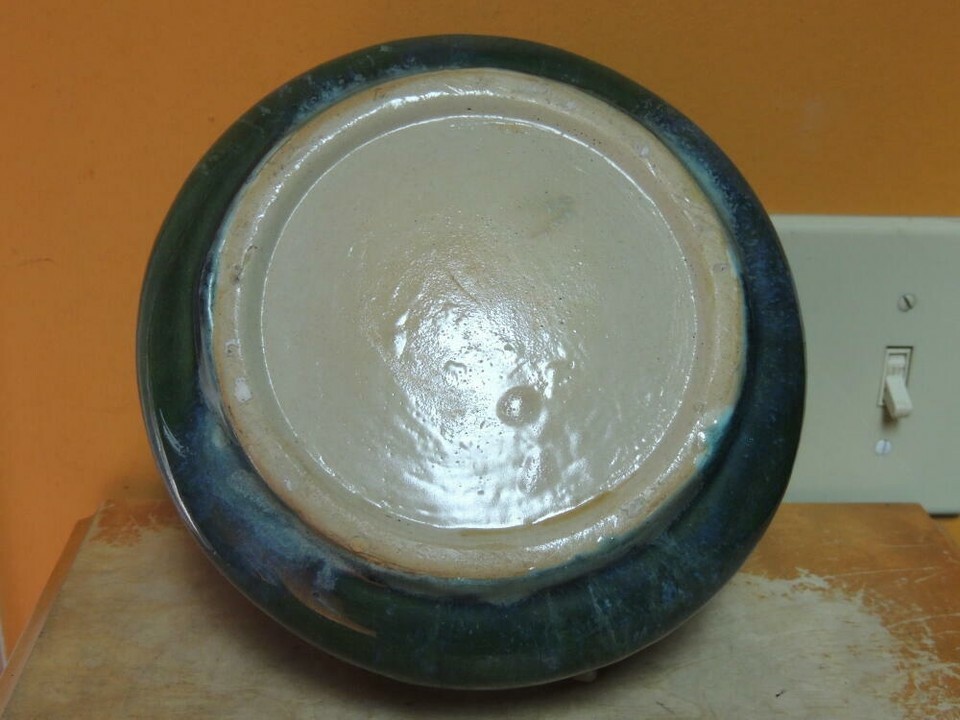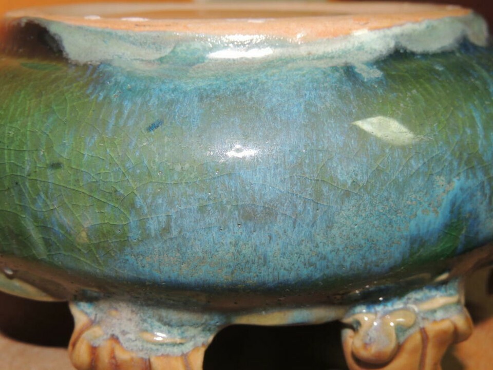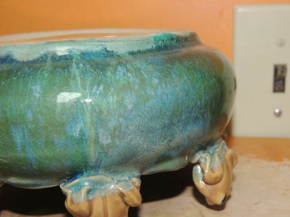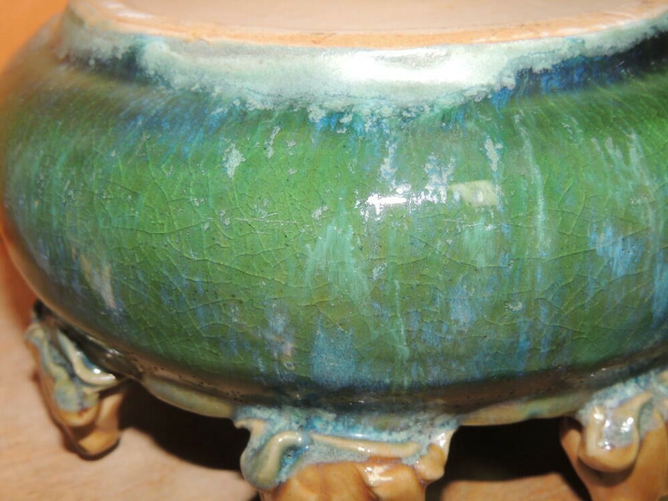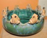 - Frog & Lily Pads 8"x4" Chinese Bowl Planter Polychrome Drip Glaze Majolica Vtg