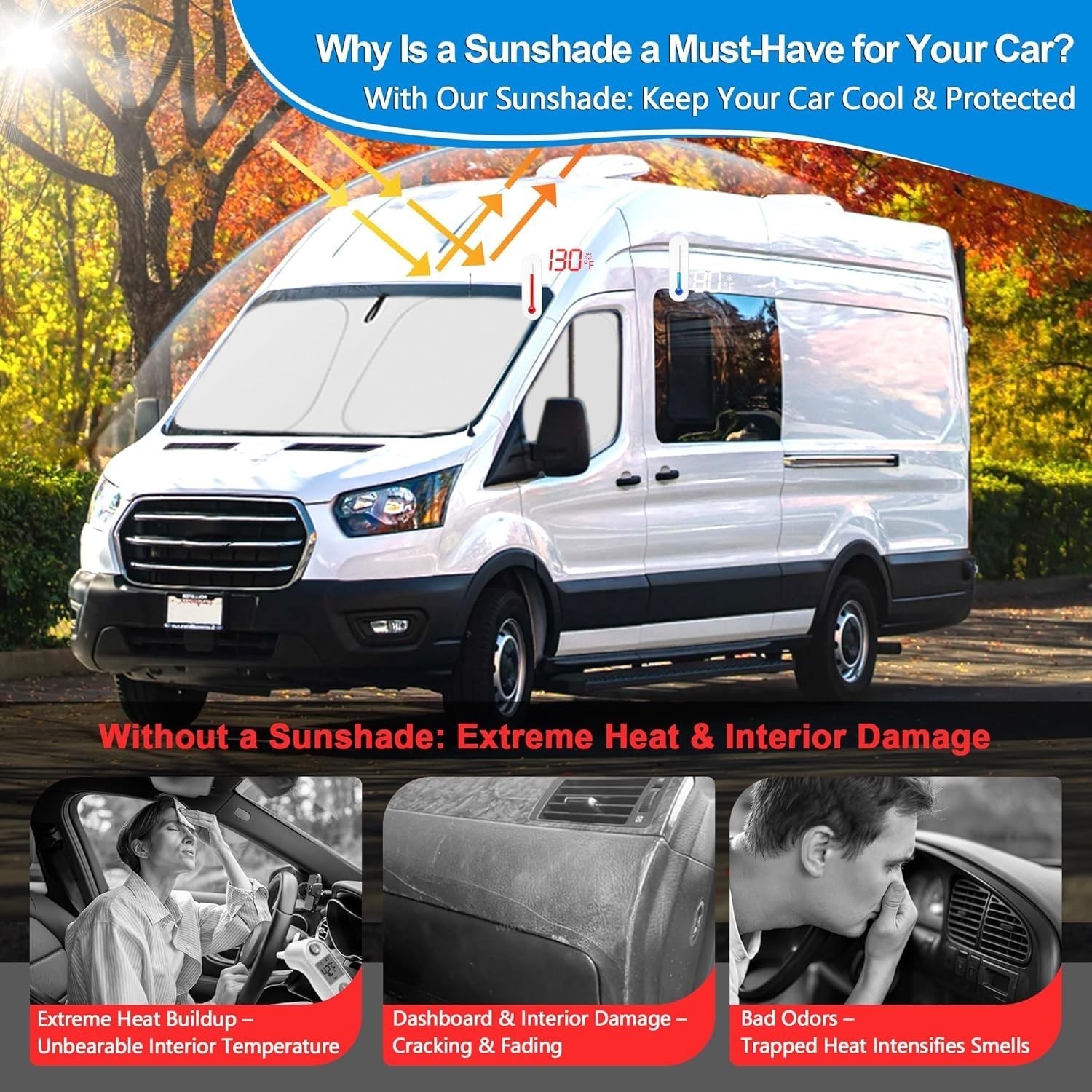- Front Side Window Sun Shade for 2015 Silver & Black-Fit 2015-2024 Ford Transit