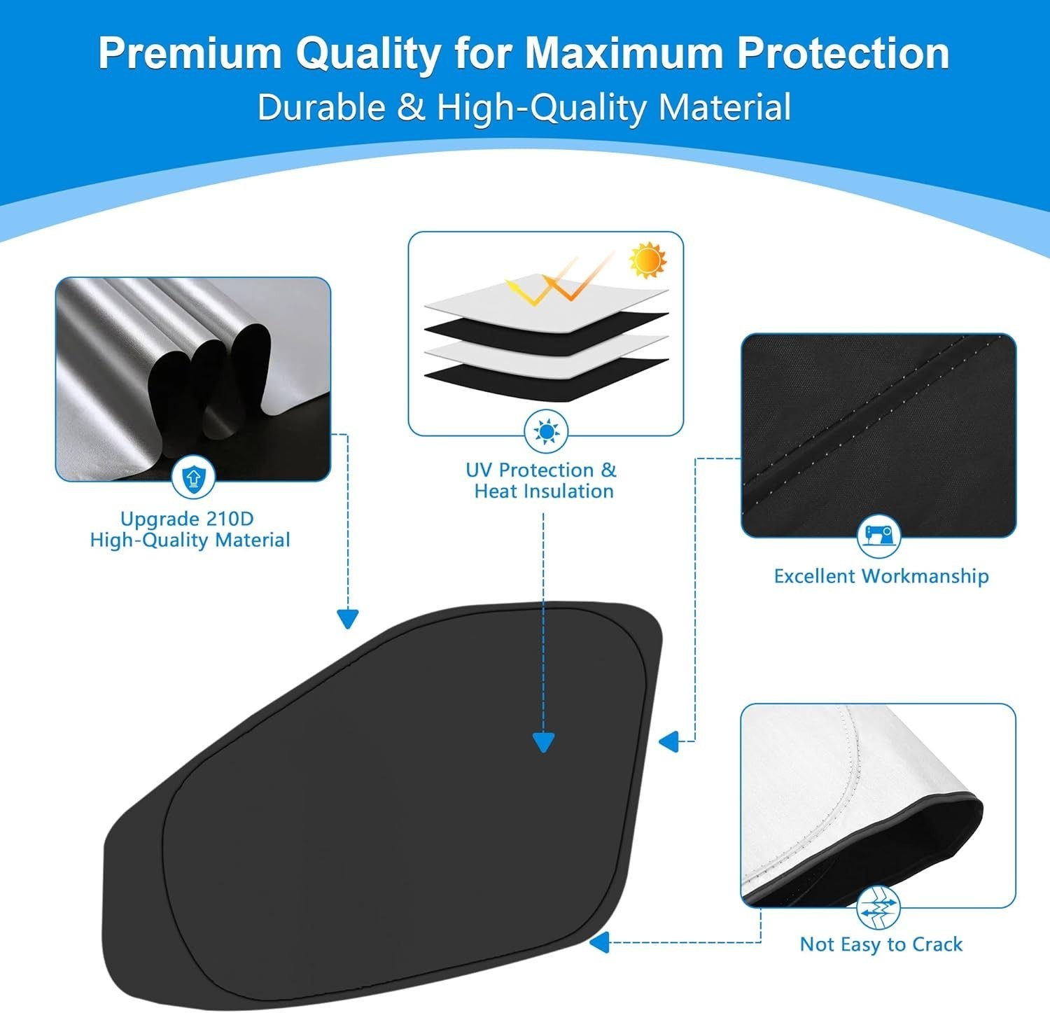 : Withstand sunlight and heat, provide both reduction of heat through the windshield and privacy. Effectively reduce the temperature inside the car, sunshine isolation, anti-UV protection and maintain your car interior temperature keep cool.