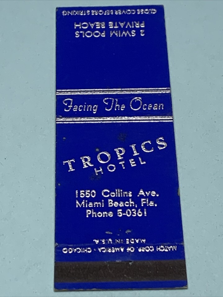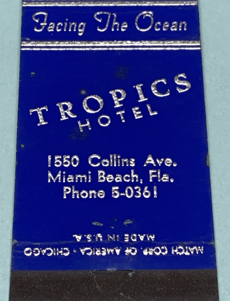 - Front Strike Matchbook Cover Tropics Hotel Miami Beach, Florida gmg unstruck