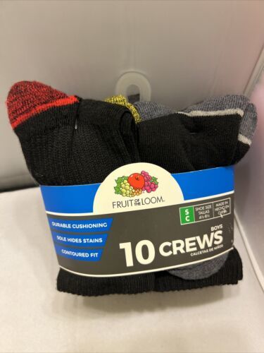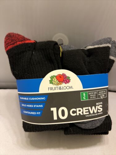 - Fruit of the Loom Boys Crew Socks Black 10-Pack Shoe Size 4.5-8.5
