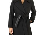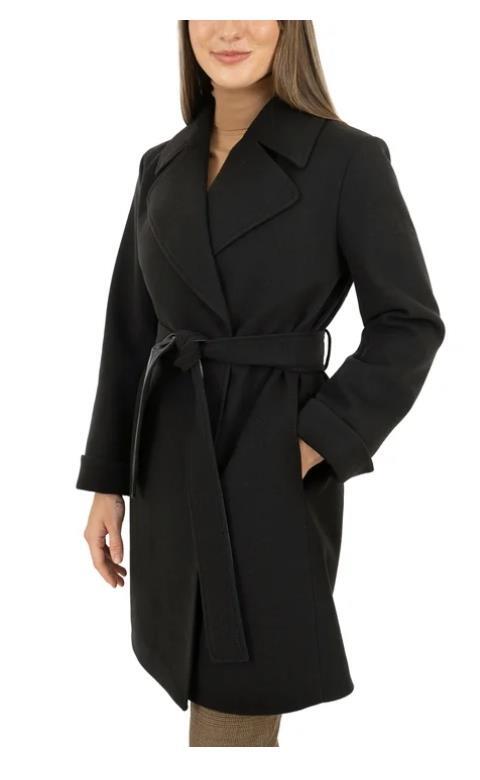 - Frye Womens Wrap Coat Black Pockets Self-Tie Belt Heavyweight Wide Lapel Collar