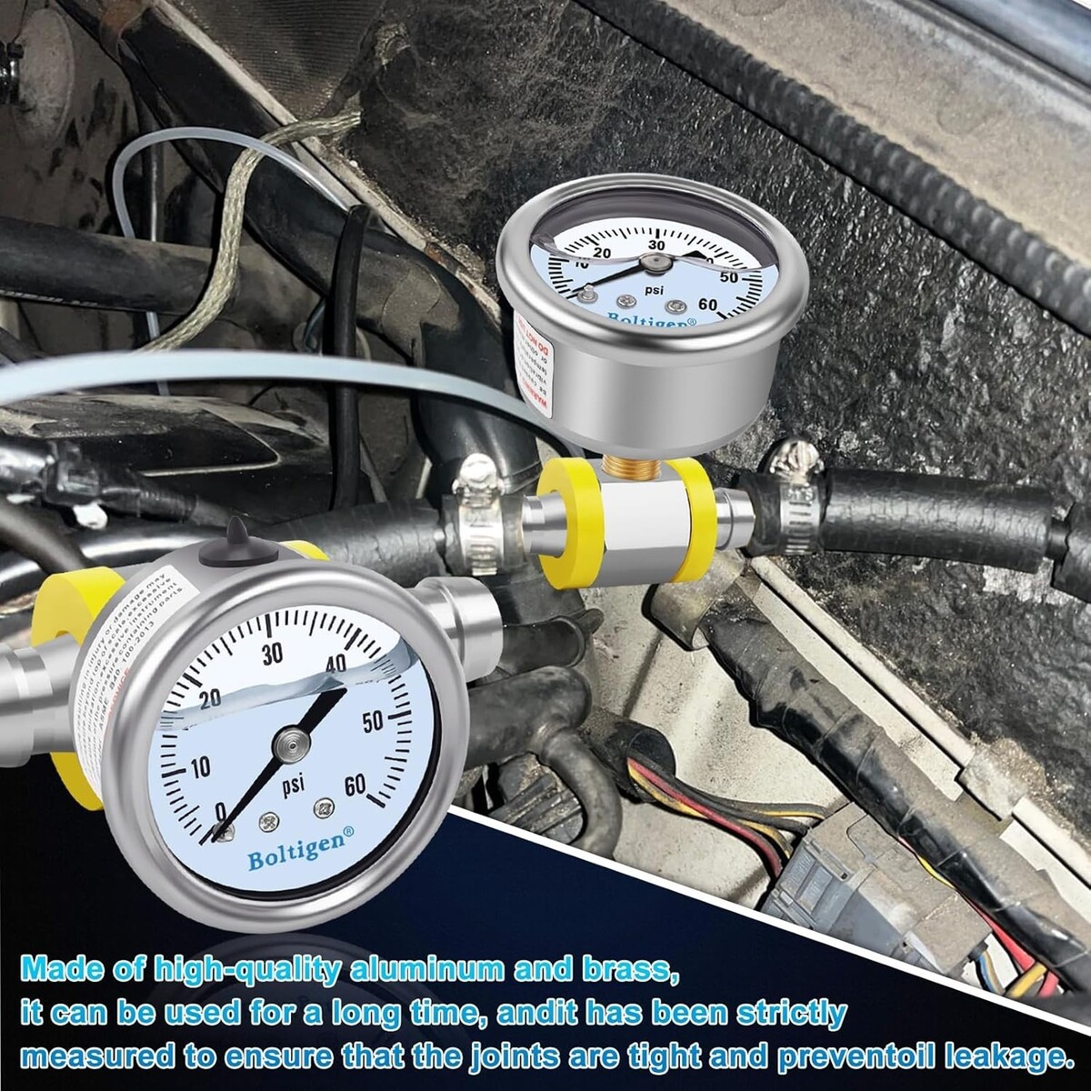 Our fuel pressure gauge kit is constructed from stainless steel, ensuring longevity and resistance to corrosion in various fuel system environments.