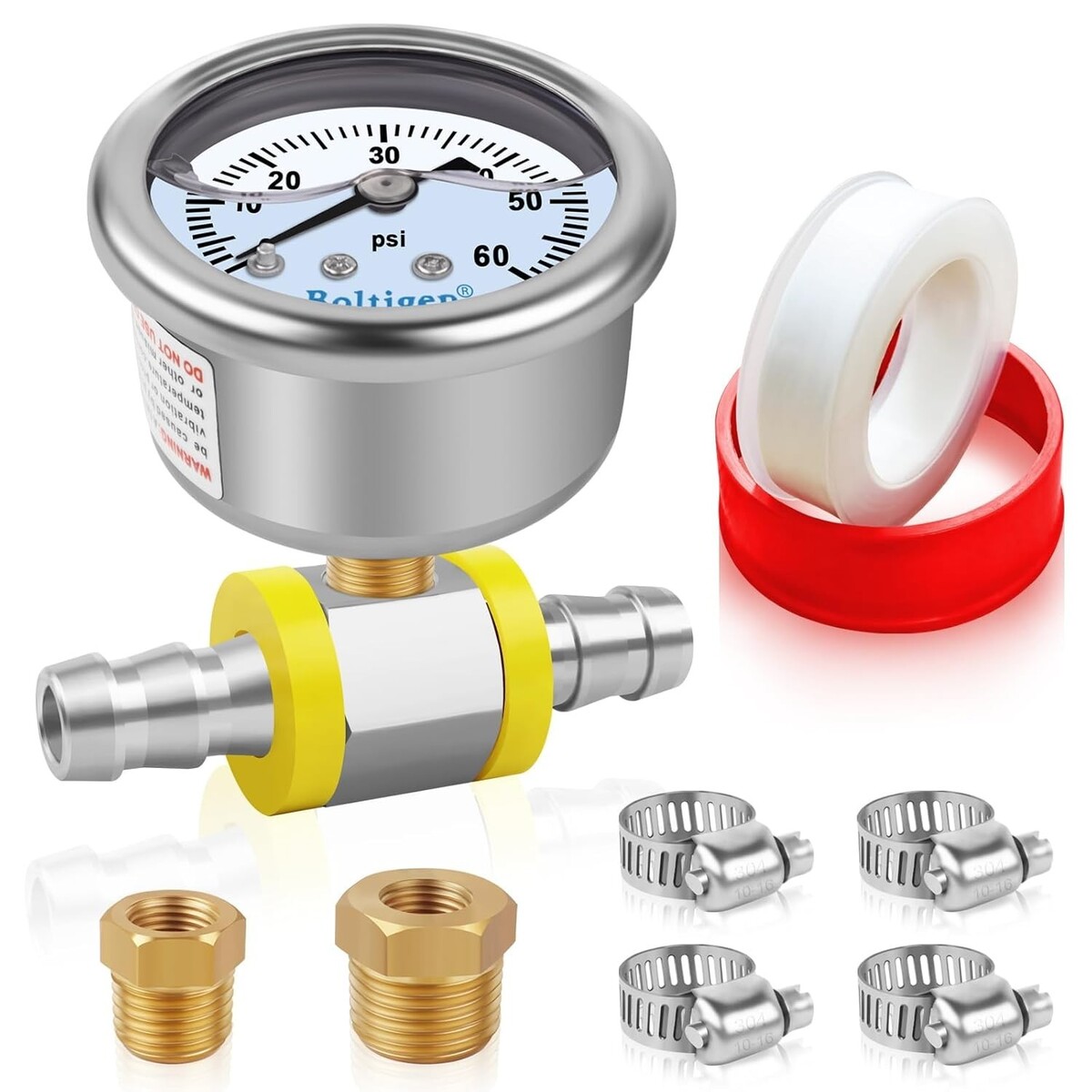- Fuel Pressure Gauge, 3/8'' Barb Fuel Pressure Gauge Kit, 0-60psi Glycerin Filled