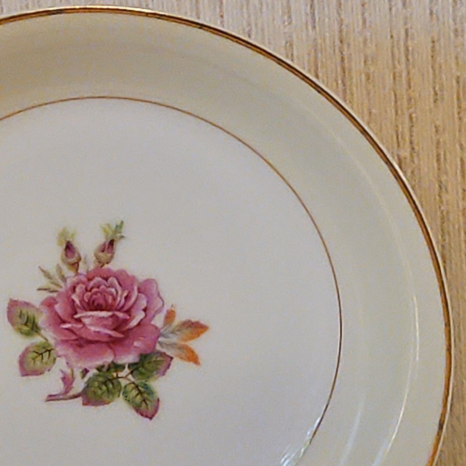 - Fuji China Rosette Fruit Bowl Dish Hand Painted Pink Floral Gold Trim Japan