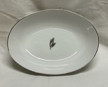 This is a Fukagawa Arita hand painted Silver Wheat oval serving bowl made in Japan. The pattern number is 928. The bowl is white with silver around the rim. The silver around the rim shows minimal wear. The wheat in the center of the bowl is painted silver and brown. The bowl measures 10.25 inches by 7.5 inches.