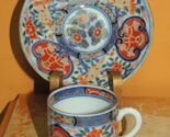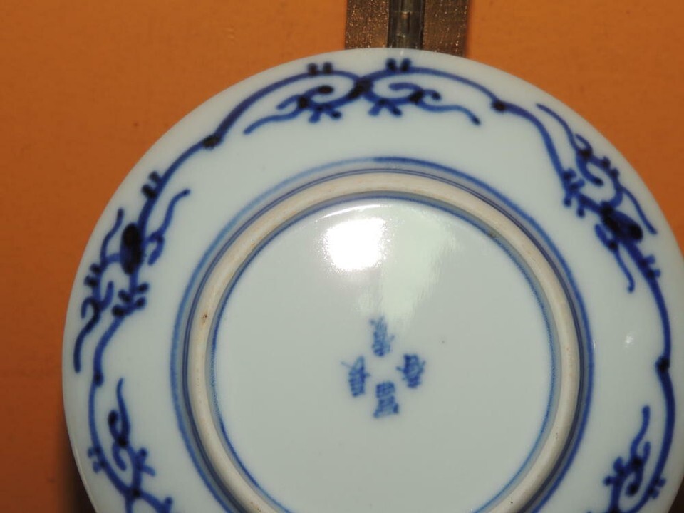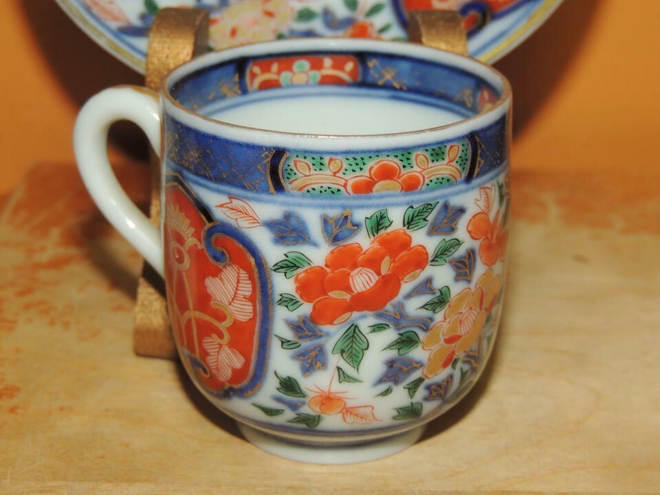 - Fuki Choshun Cup& Saucer Doucai underglaze blue w red green marked cobalt Meiji