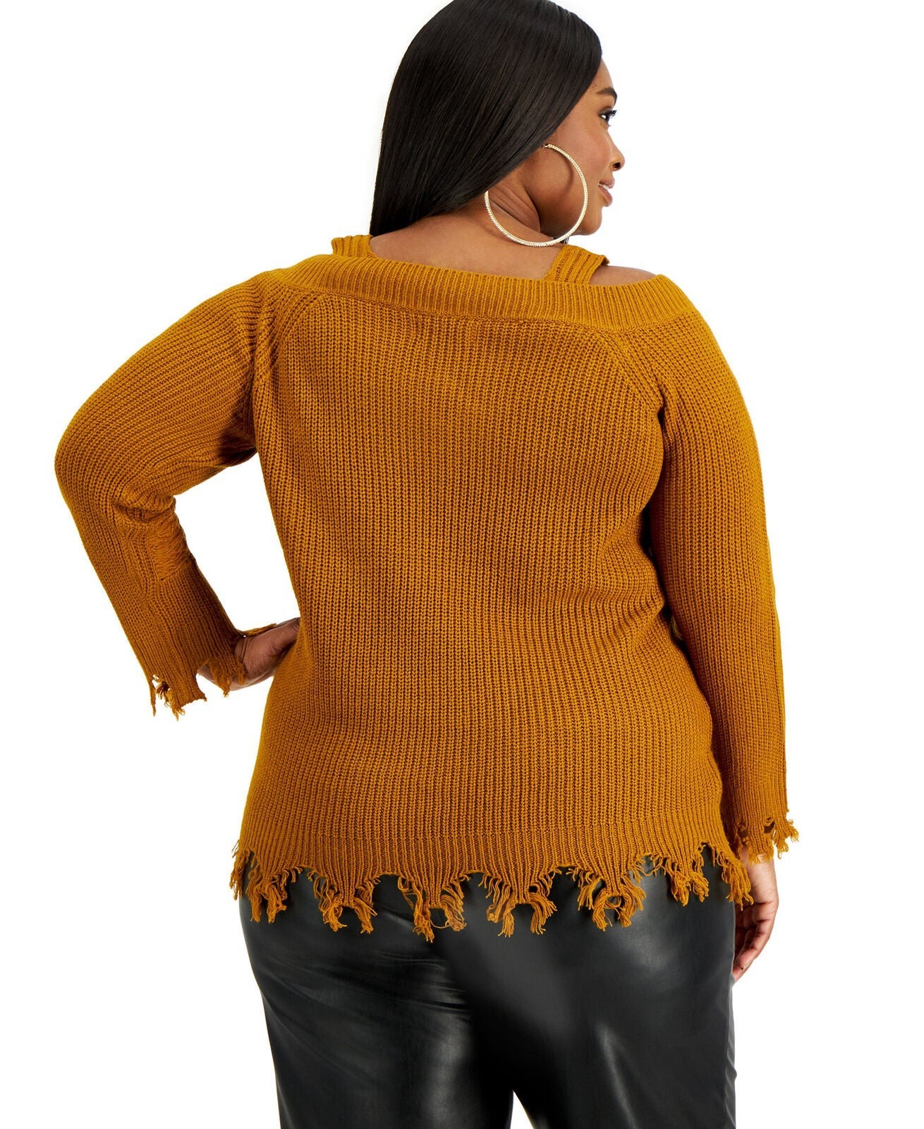 Full Circle Trends Womens Plus Trendy Ripped-Edge Sweater, Size 2X