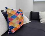 Full Grain Leather Cushion Cover 16"x16" – Handmade Multicolor Patchwork Goat Le