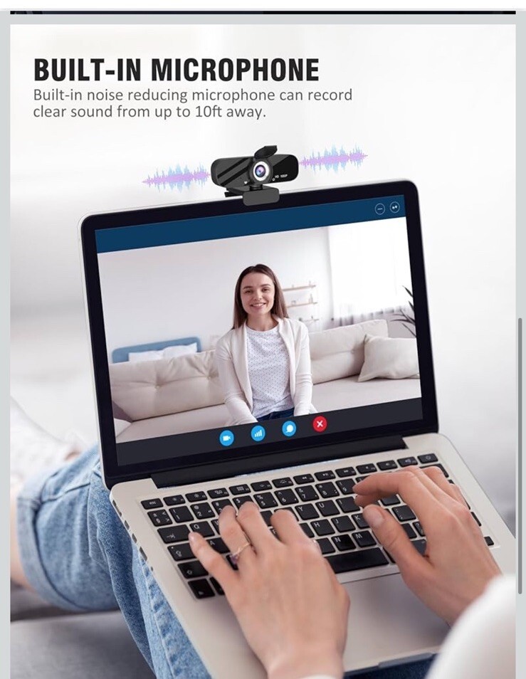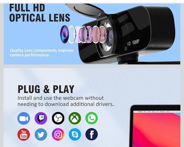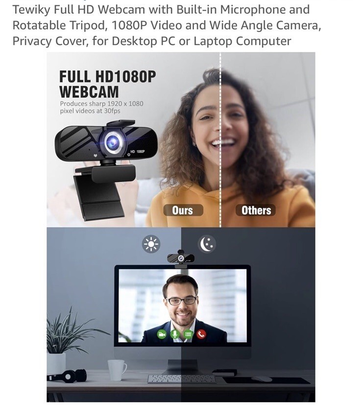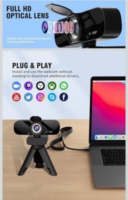 - Full HD Webcam with Built-in Microphone and Rotatable Tripod, 1080P Video and...
