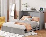 Full-Size Murphy Bed: Drawers, USB, Gray