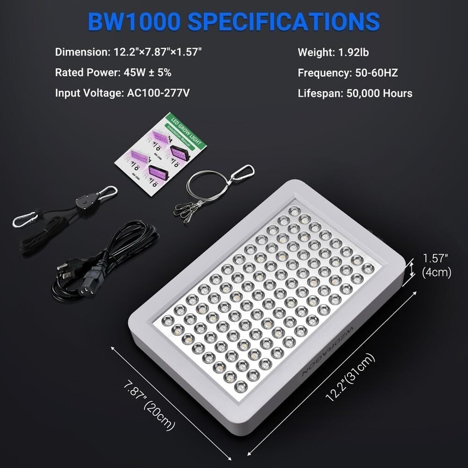 High Performance Materials: Crafted with an advanced aluminum substrate for superior heat dissipation, our LED grow light operates within a safe temperature range (50F to 60F), preventing plant burn and promoting prolonged lighting durations.