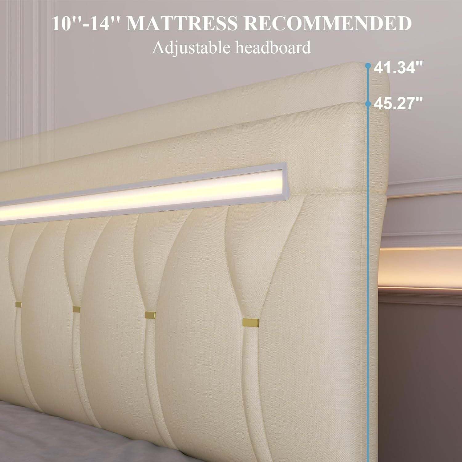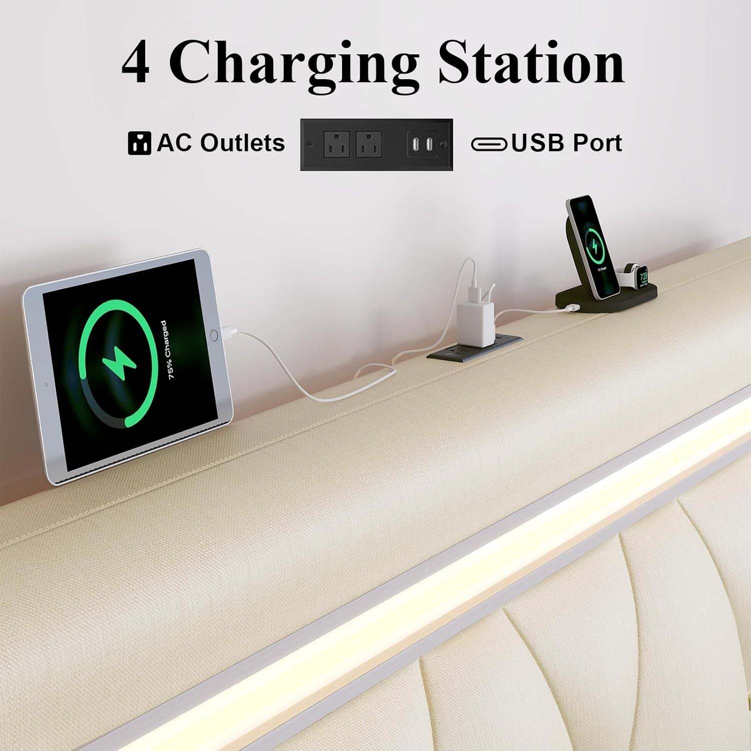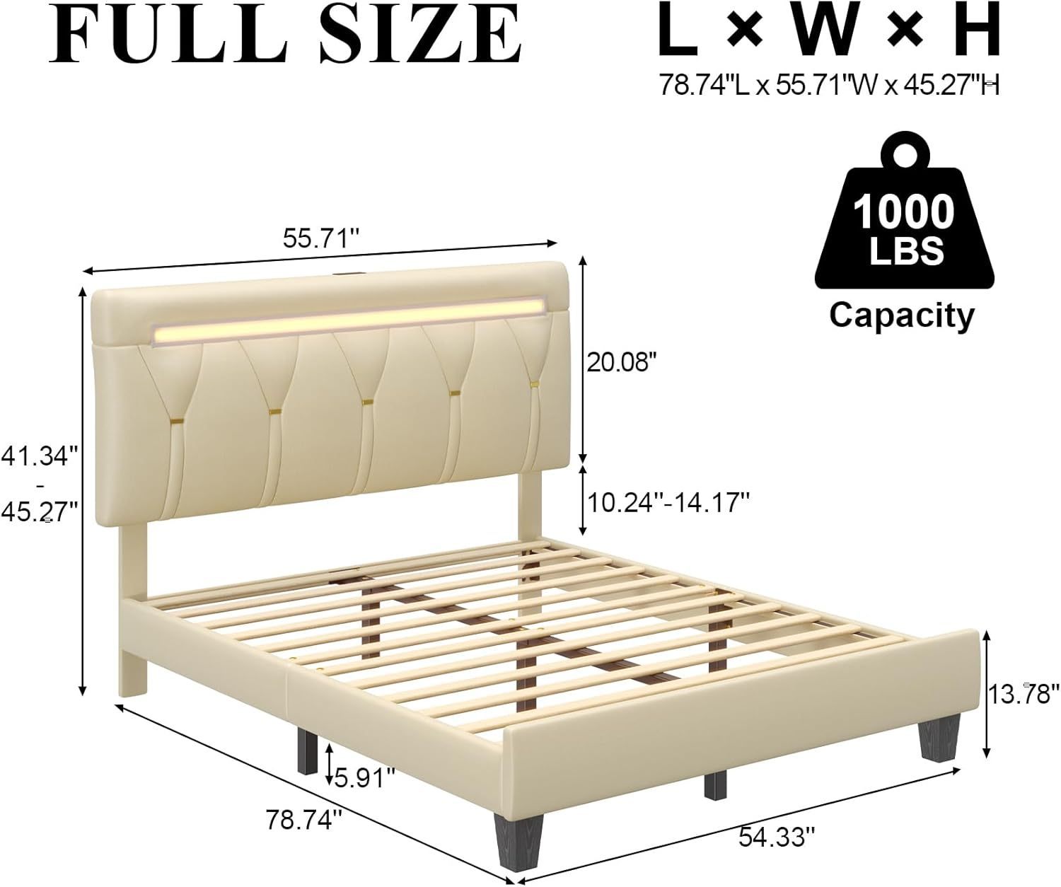 ? Ultimate Convenience Full Size Bed Frame: Built-In AC/USB Charging: Never scramble for outlets of full bed frame! The integrated led full size bed frame with headboard features 2 standard power sockets and 2 USB ports, keeping phones, tablets, and laptops powered up within easy reach while you relax in Full bed frame.