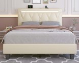 Full Upholstered Platform Bed: LED, Charge, Bluetooth, Adj Headboard