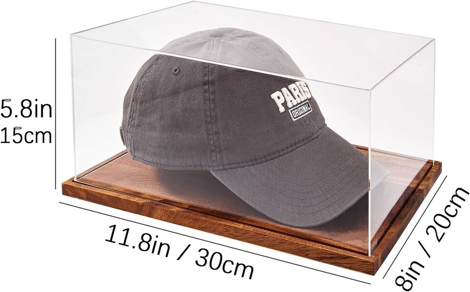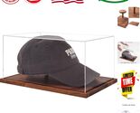 - Fully Assembled Clear Acrylic Cap Display Case with Wooden Stand for Memorabilia